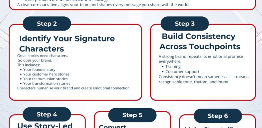 A powerful brand is built not by one grand narrative but by small, consistent stories repeated across the organisation.